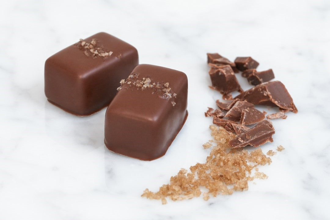 ダークチョコレートのほろ苦さとフランス・ブルターニュ産の海塩が、濃厚なキャラメルの甘さを引き立てるひと粒。