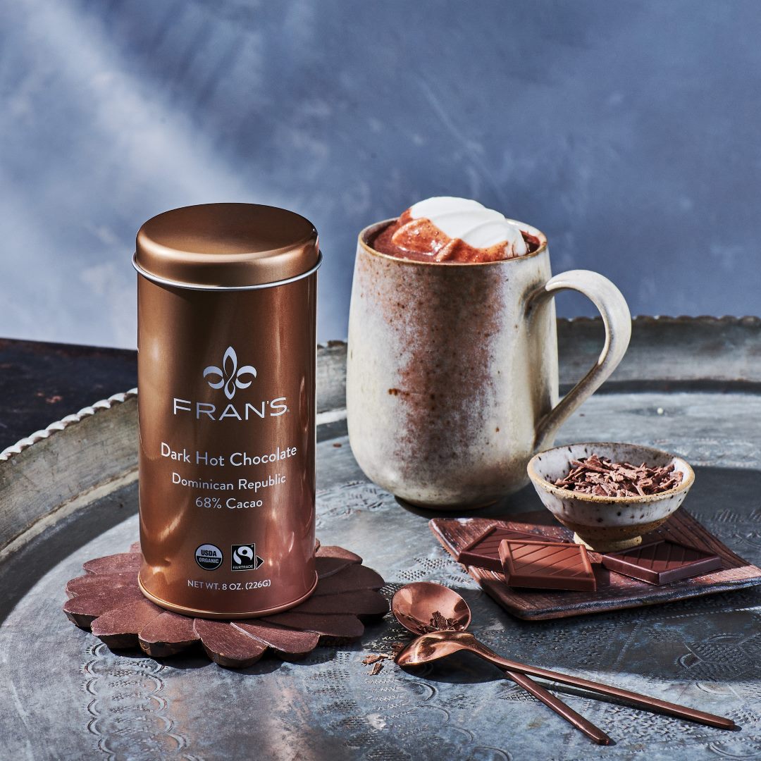 シングルオリジンのドミニカ産カカオ68%を使用したダークホットチョコレート。ほろ苦さとフルーティーさ、酸味のバランスが絶妙なカカオ本来の味わいとなめらかな舌ざわりが心地よい逸品。