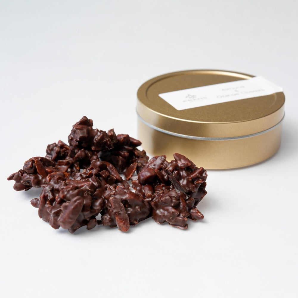 アーモンド&オレンジクラスターは、香ばしいアーモンドと爽やかなオレンジ、ダークチョコレートのほろ苦さが絶妙な美味しさ広がるひと口サイズのクランチチョコレートです。