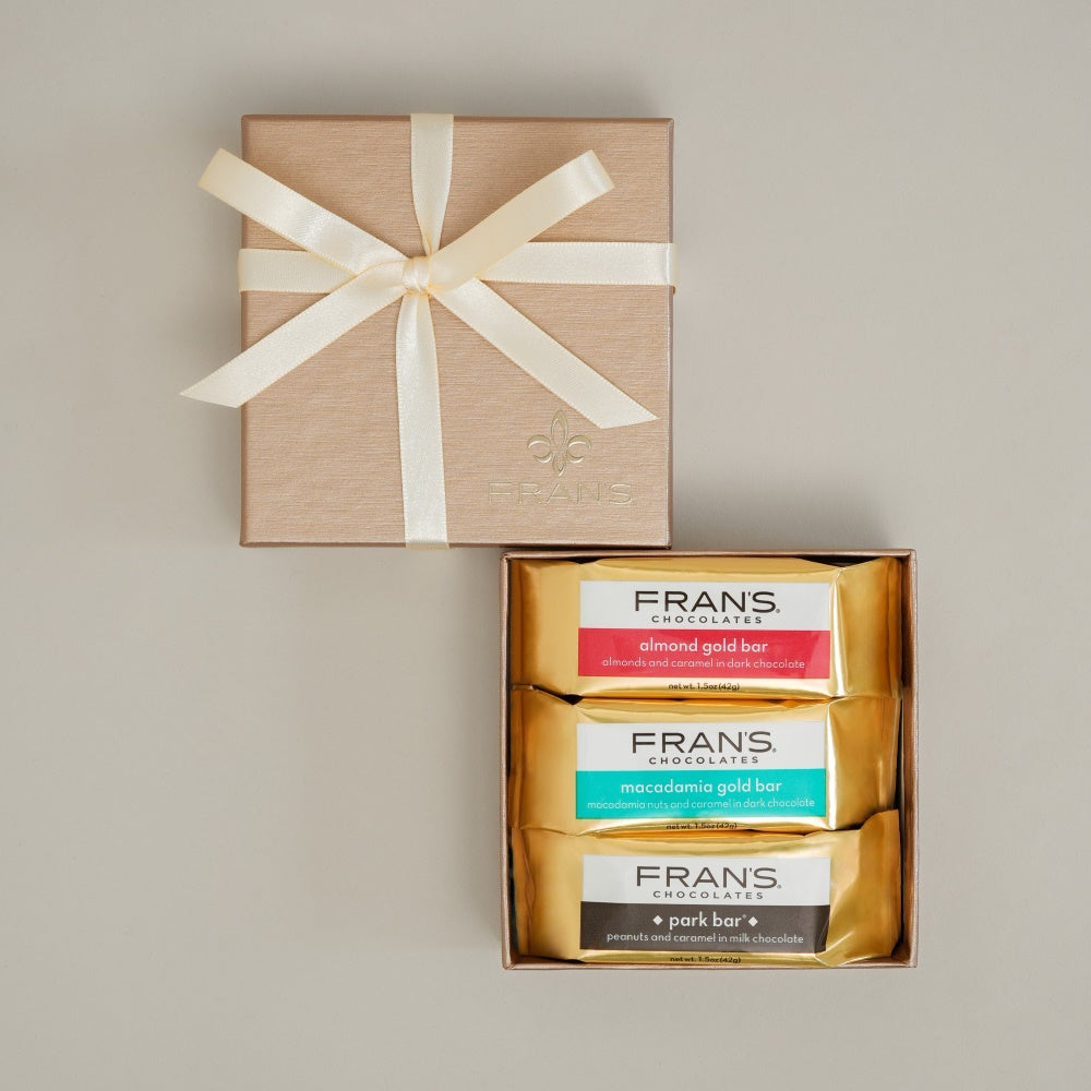 創業者フランの子供時代のお気に入りであるチョコレートバーを背景に作られた代表作のひとつであるゴールドバー。