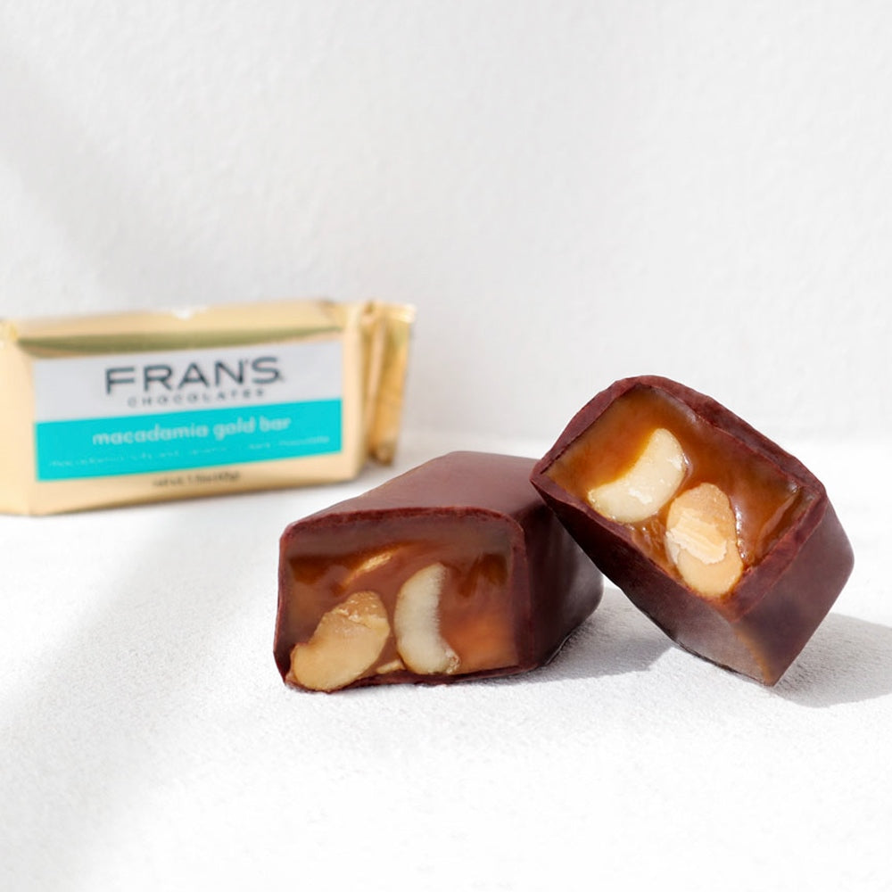 最高品質のマカダミアナッツとなめらかなバターキャラメルをダークチョコレートでコーティング。クリーミーなマカダミアナッツと風味豊かなバターキャラメルを芳醇なダークチョコレートが相性抜群な一本です。