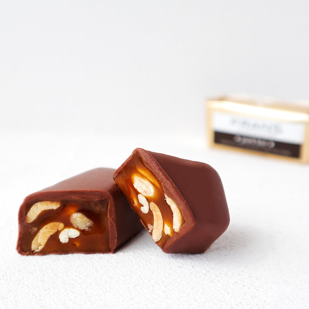 なめらかなキャラメルとローストしたピーナッツをミルクチョコレートでコーティング。香ばしくローストしたピーナッツと風味豊かなバターキャラメルを濃厚なミルクチョコレートが相性抜群な逸品をお楽しみください。