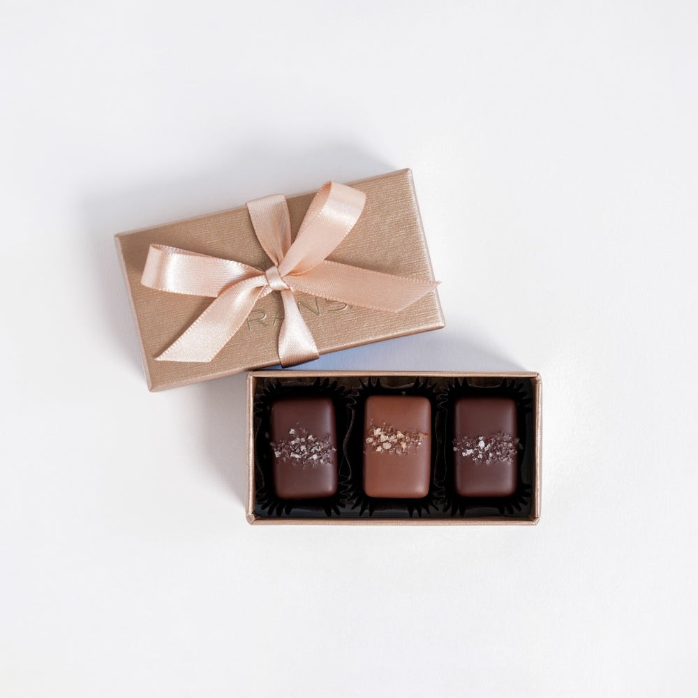 「ソルトキャラメル」は、バニラビーンズ香るソフトバターキャラメルを口溶けなめらかなチョコレートでコーティングし、海塩をトッピングして仕上げました。